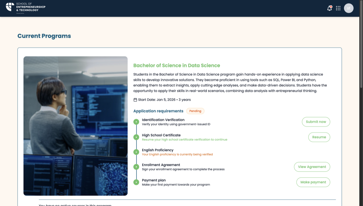 I also lead frontend development for FIT (Frontier Institute of Technology) — a US-focused university product built on the same architectural foundation.